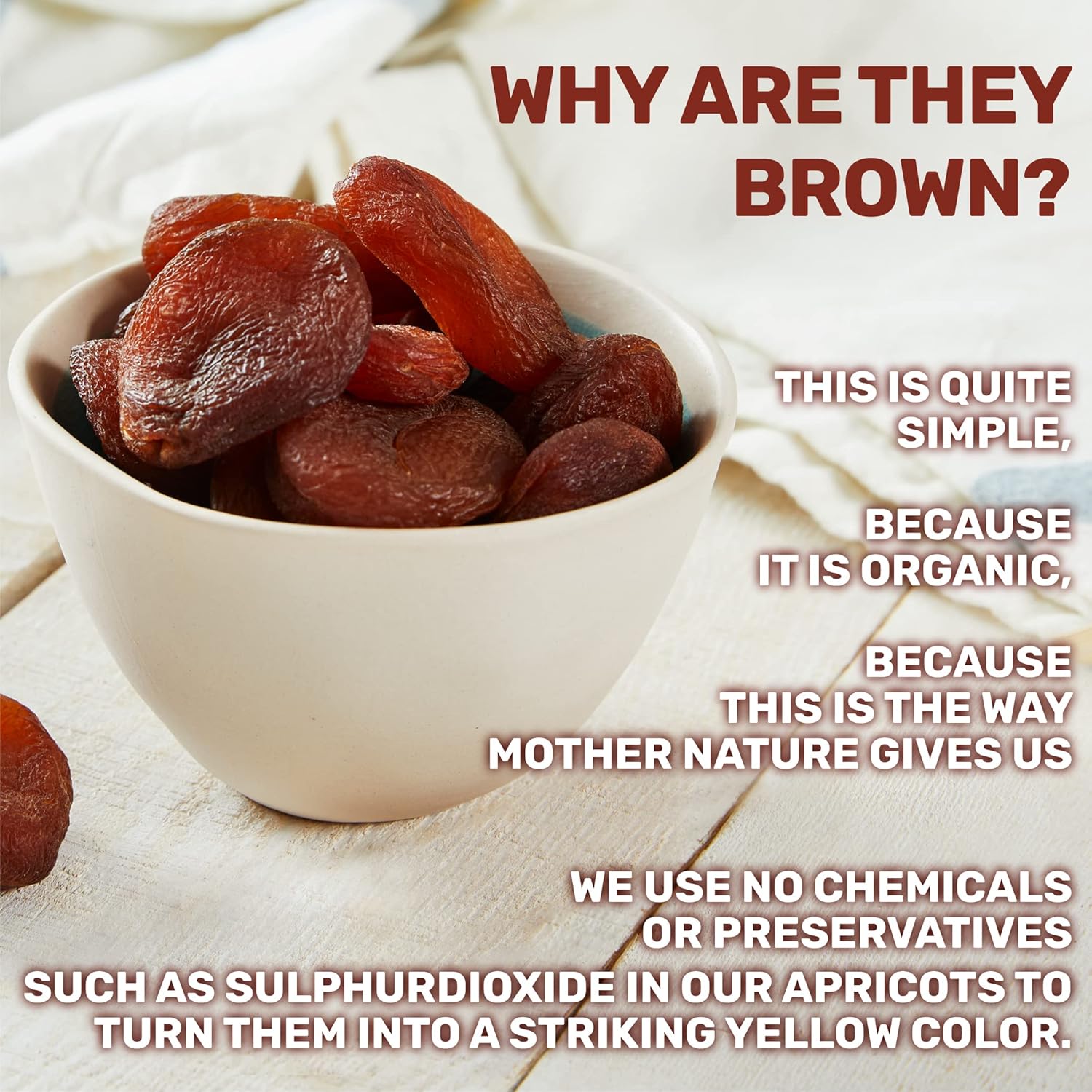 - Unsulfured and Preservative-Free for Clean Snacking: Unlike bright yellow apricots treated with sulfur dioxide, ours are naturally dark because they are unsulfured and free from any chemical preservatives.