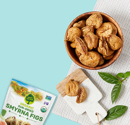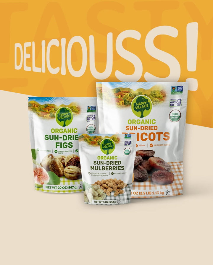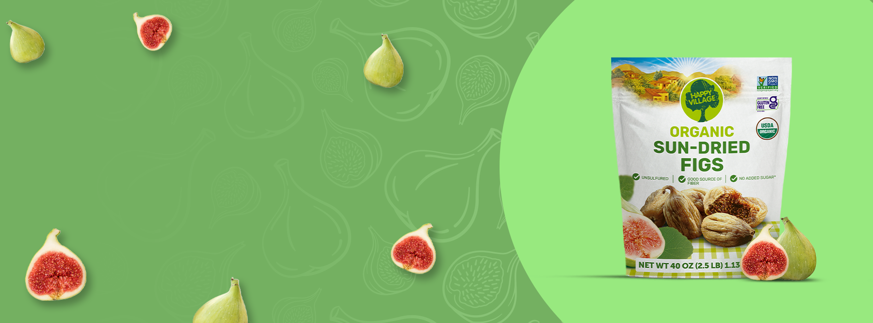 - Organic sun-dried figs: Includes 40 oz resealable bag of Happy Village organic sun-dried figs. No added sugar, no preservatives.